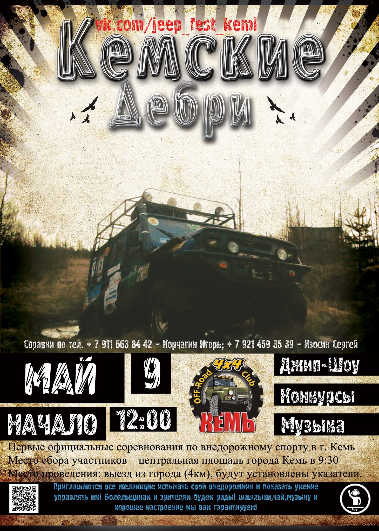 5.1. ДЖИП – СПРИНТ, посвящённый годовщине победы в Великой Отечественной Войне состоится 09 мая 2014 года в городе Кемь, в районе 4 км (правая сторона дороги) – напротив рыбзавода.