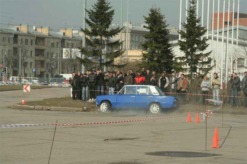 Разгрузились, разобрались (сняли сиденья и все лишнее) и пошли смотреть трассу. Уже при первом взгляде стало понятно – уборы будут и оные будут страшные. Трасса, где в прошлом году была змейка, выпрямлена в большую дугу с измененным радиусом и радиус этот уменьшался! И это после неплохого прямика, но и это не все – после была связка тротуарных дорожек с весьма коварными поребриками, где и пробил сразу со старта переднее колесо Ивков. Если ко всему добавить еще и некоторое количество ям на поворотах и немного песка, то удивляться уборам вряд ли стоит.Отдельного разговора стоит состав участников и их авто. Конечно были стоковые авто, даже Ока и Нива, на Оке кстати по информации оргов ехала, причем неплохо, 13 девочка!